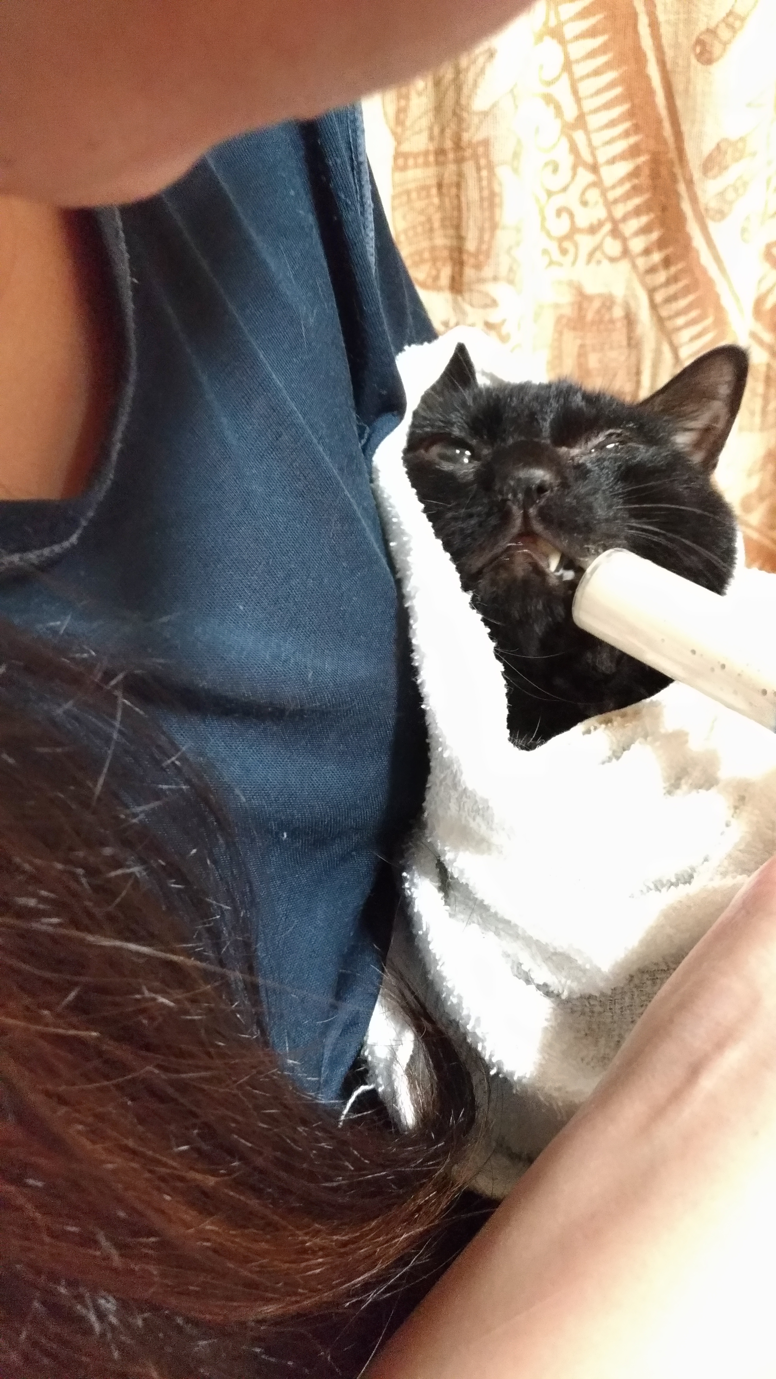 毎日の看病は正直しんどいときもありますが、流動食をくちゃくちゃ飲み込み一生懸命生きる姿を見ていると愛おしく癒やされます。